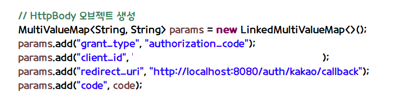- 카카오 로그인을 완료하려면 인가 코드로 토큰 발급 요청을 해야 함.