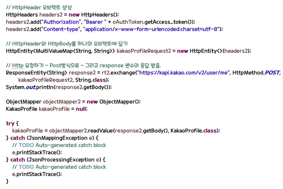 System.out.println("카카오 아이디(번호) : " + kakaoProfile.getId());