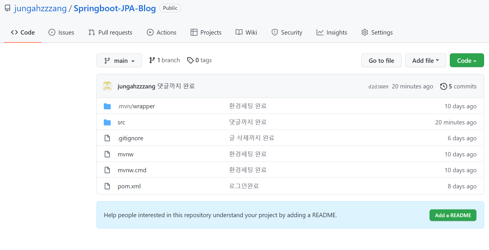 댓글 기능까지 해서 스프링부트 블로그 만들기 프로젝트가 끝이 났다!!! 커밋까지 완료!