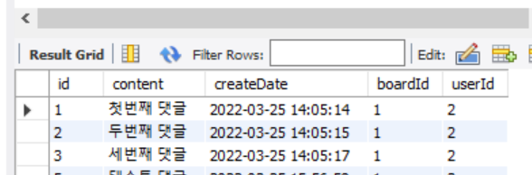 테스트용으로 DB에 댓글 3개를 넣어준 뒤
