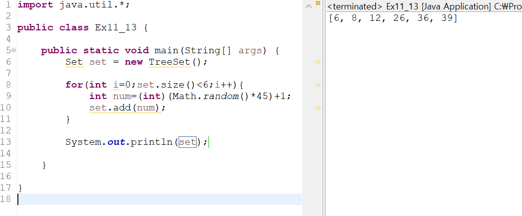 ->HashSet과 다르게 정렬이 되어서 출력된다. 정렬 필요 X (TreeSet의 장점)