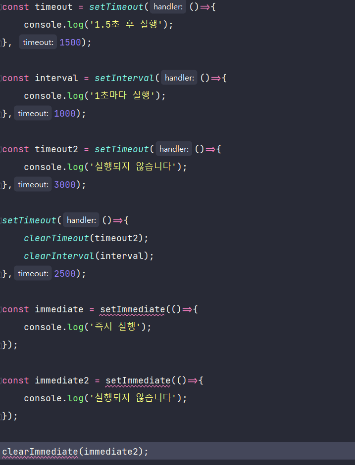 - setImmediate(콜백 함수) : 콜백 함수를 즉시 실행함.