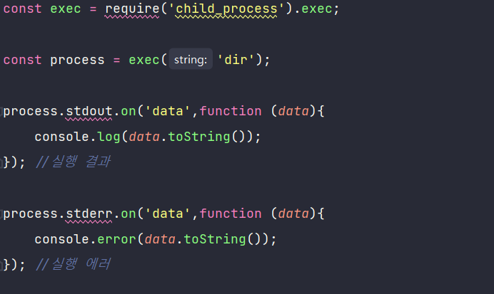 - 노드에서 다른 프로그램을 실행하고 싶거나 명령어를 수행하고 싶을 때 사용하는 모듈