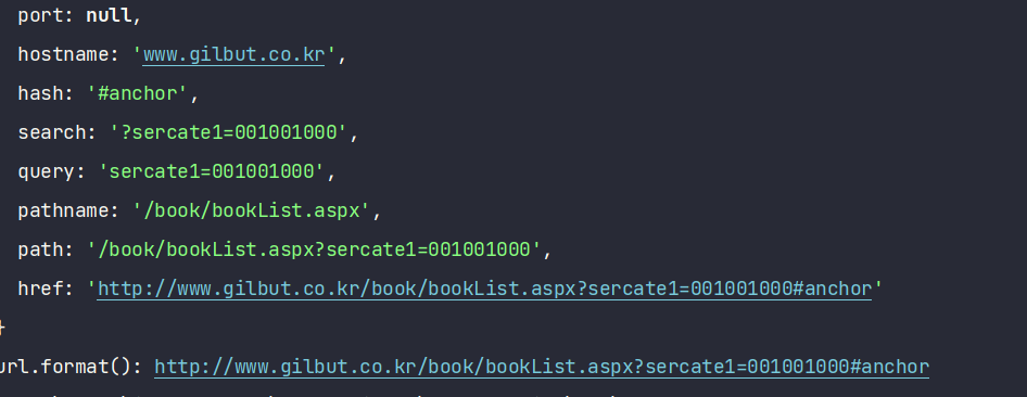 - 기존 노드의 url을 사용 시 search 부분을 사용하기 쉽게 객체로 만드는 모듈
