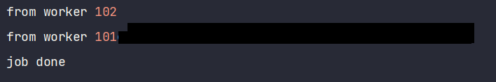 - 아래 코드에서는 두 개의 워커가 돌아가고 있고 각각 부모로부터 숫자를 받아서 100을 더해 돌려줌.
