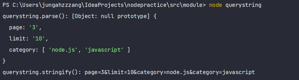 - querystring.stringify(객체) : 분해된 query 객체를 문자열로 다시 조립함