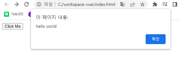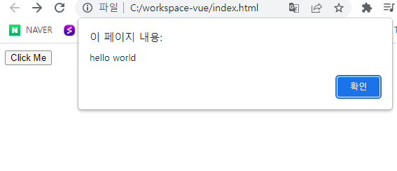 버튼을 누르면 설정해둔 alert창이 잘 뜬다.