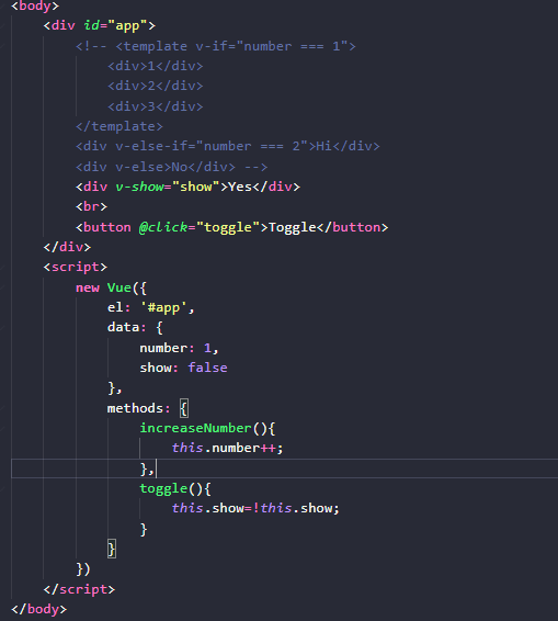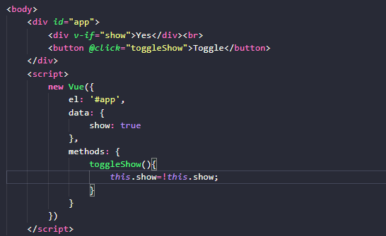 아래와 같이 v-if와 @click을 같이 줄 수도 있다.