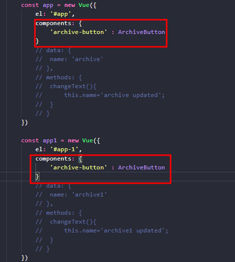 - 모든 인스턴스에 등록하려면 Vue 생성자에서 .component()를 호출하여 수행하면 됨.
