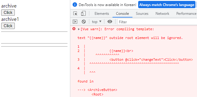 위와 같이 작성 후 실행해 보면 루트 엘리먼트가 없어서 컴파일 에러가 난다.