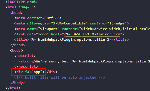 index.html에서 id로 app을 매핑하고 app.vue에서