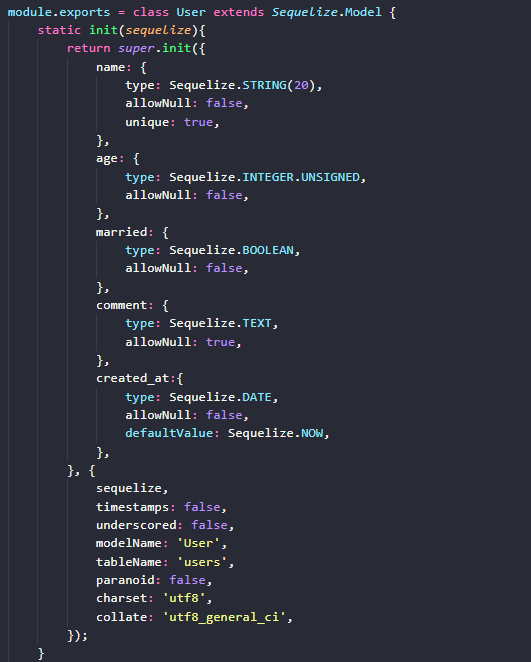 - INSERT : create 메서드 사용. 한 가지 주의할 점은 데이터 삽입 시 MySQL의 자료형이 아니라 시퀄라이즈 모델에 정의한 자료형대로 넣어야 한다.