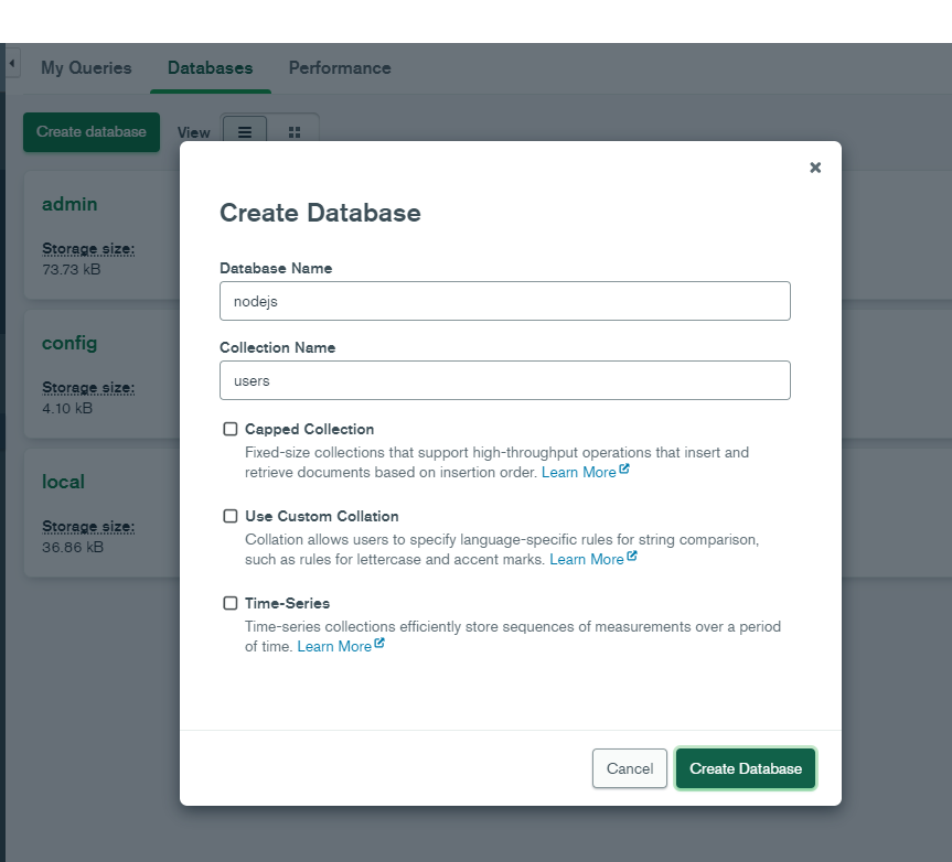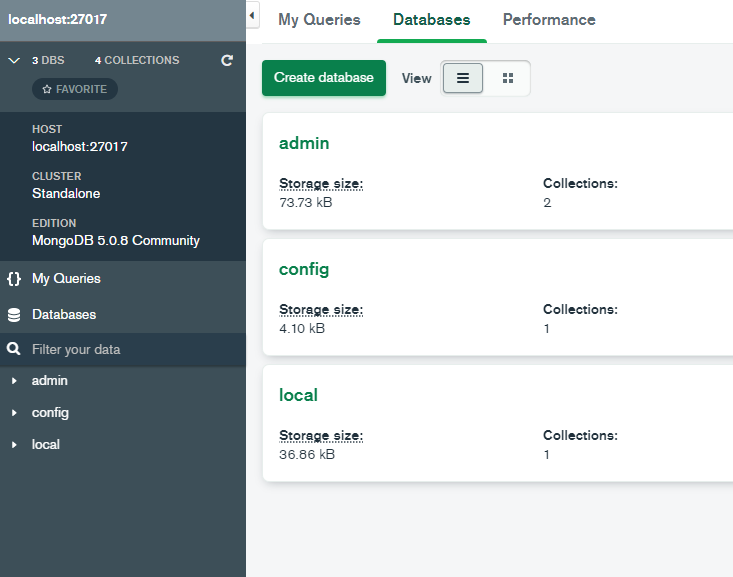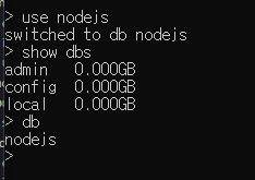 기본적으로 admin, config, local 데이터베이스가 있다.