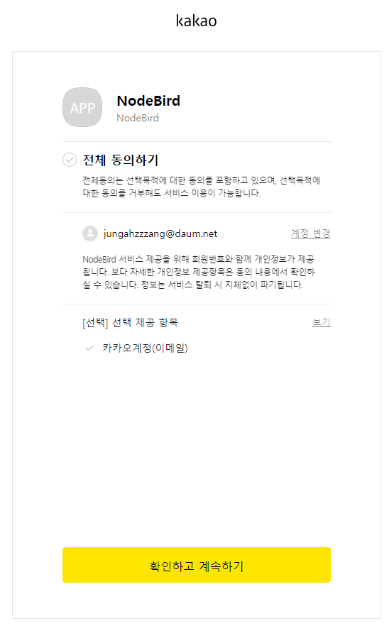 4. 프론트 단에서 카카오톡 로그인을 누르면 아래와 같은 화면이 뜬다.
