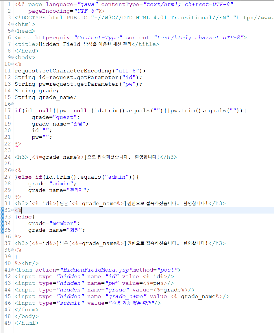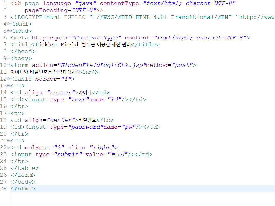 -로그인 기능을 제공하는 HiddenFieldLogin.jsp 페이지 제작