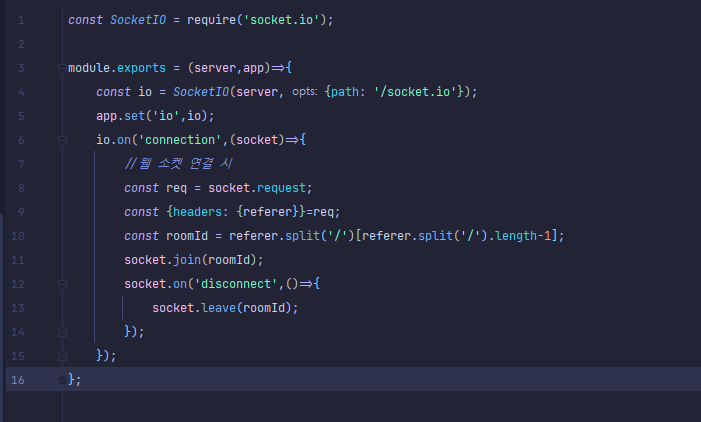 - 연결이 끊겼다면 socket.leave로 해당 방에서 나감.
