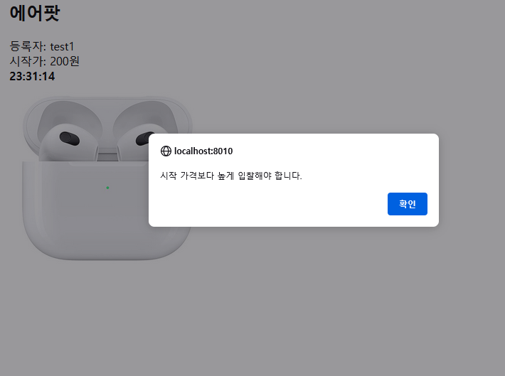 - 시작 가격보다 낮은 금액 입력 시 경고창 출력