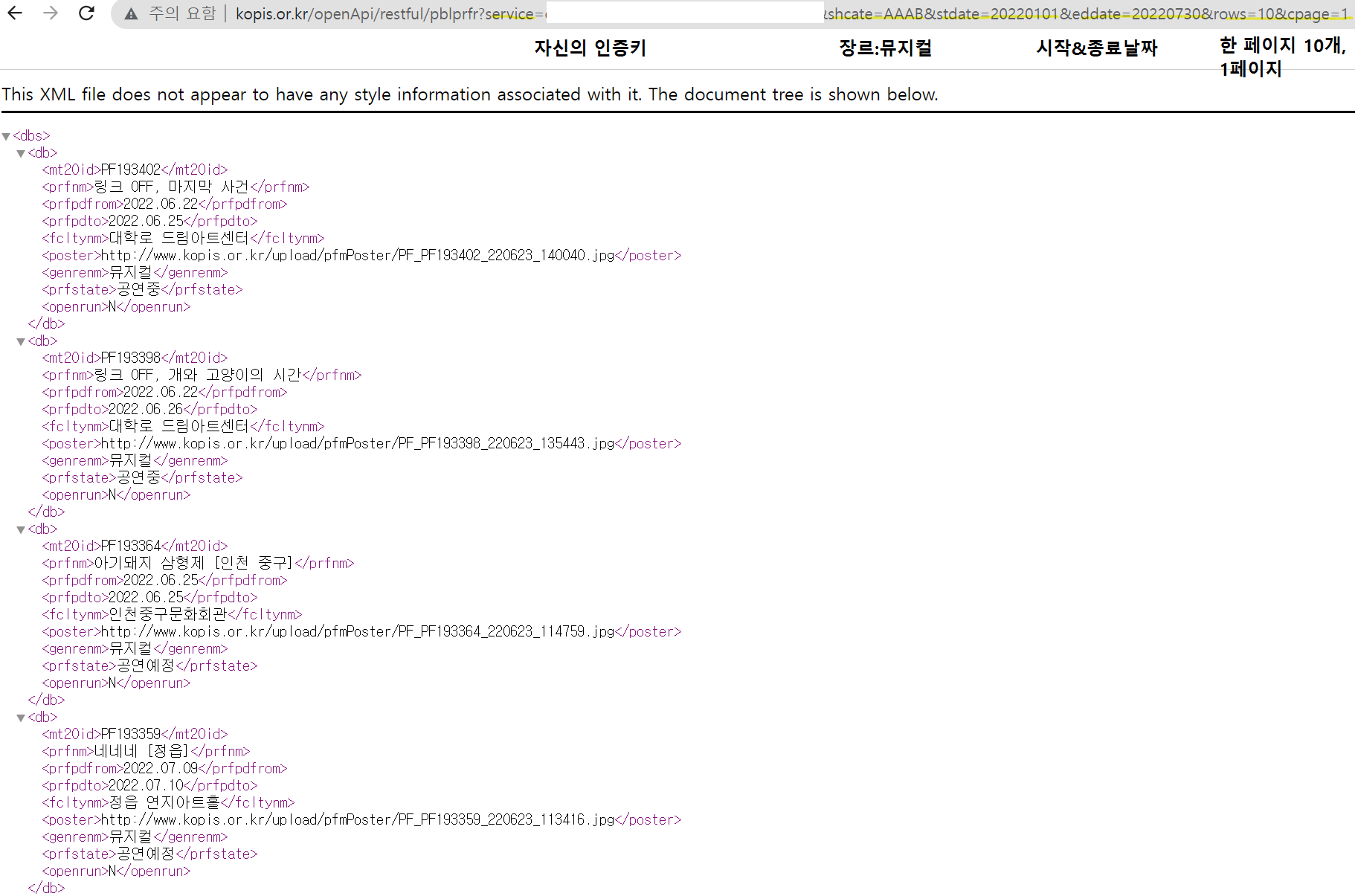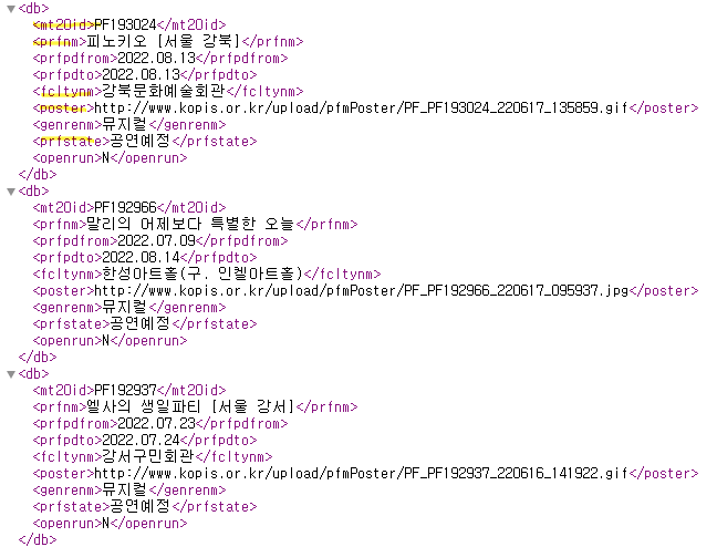 KOPIS API는 XML형식이라 파싱하는 것부터 애를 먹었다ㅠㅠ
