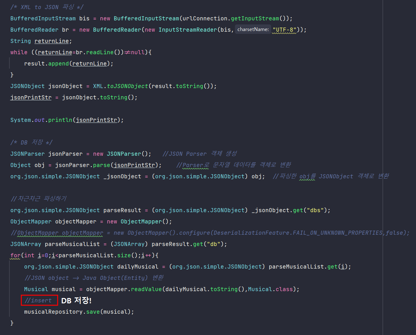 맨 마지막줄에는 insert하기 위해 JPA의 save를 사용해주었다.