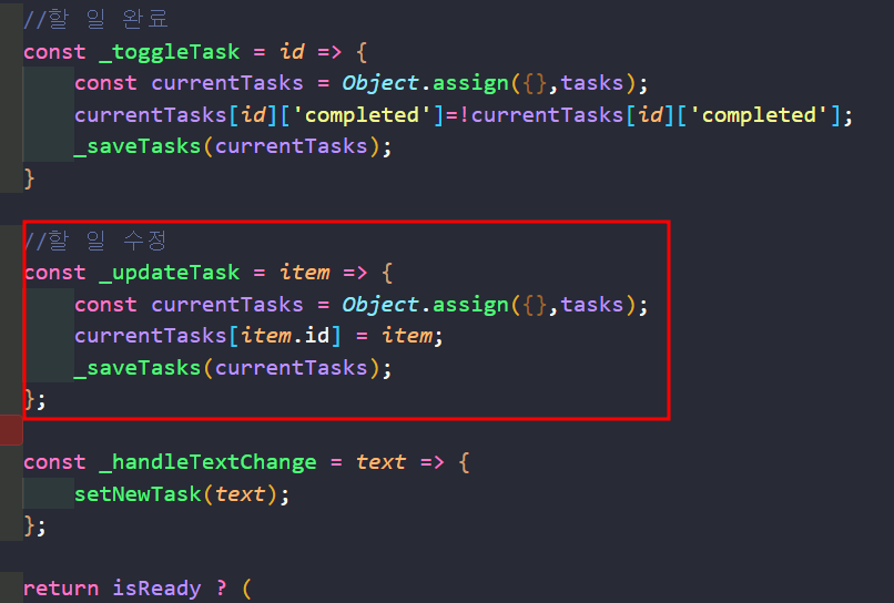 => 수정 완료된 항목 전달 시 tasks에서 해당 항목을 변경하는 함수 작성