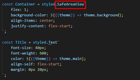 - SafeAreaView : 자동으로 padding값이 적용되어 노치 디자인 문제를 해결할 수 있음.