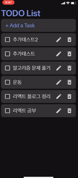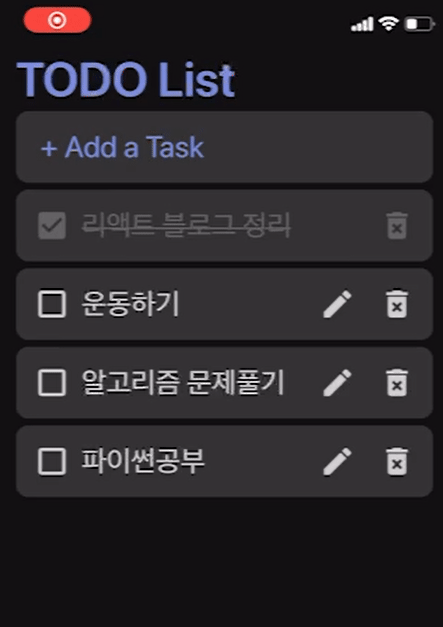 - 완료 : 할 일 항목의 완료 상태 관리 기능
