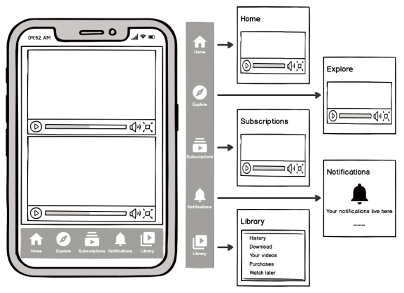 탭 내비게이션은 보통 화면 위 or 아래에 위치하며, 탭 버튼을 누르면 연결된 화면으로 이동하는 방식으로 동작함.