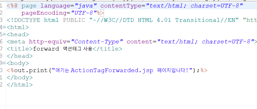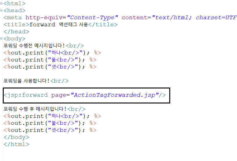 사용법 : <jsp:forward page="포워딩 대상 페이지"/>