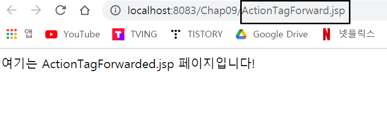 주소에는 ActionTagForward.jsp 로 출력된다.