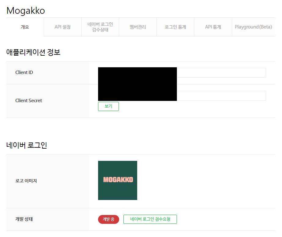 네이버 로그인도 마찬가지로 네이버 개발자센터에 애플리케이션을 등록하고 Client 아이디와 비밀번호를 가져와서 쓰면 된다.