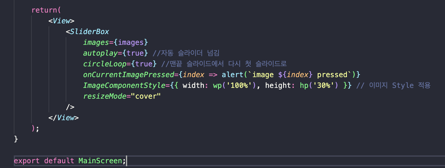 4. 전체 코드 - 이미지를 화면 비율에 맞게 지정하기 위해 react-native-responsive-screen 라이브러리 사용