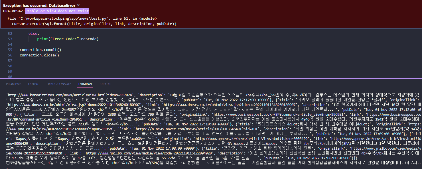 except: # 데이터 중 encoding 오류 데이터는 제외하고 DB 저장