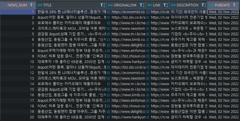 sql = "insert into tb_news values (news_seq.nextval, :title, :originallink, :link, :description, :pubDate)"