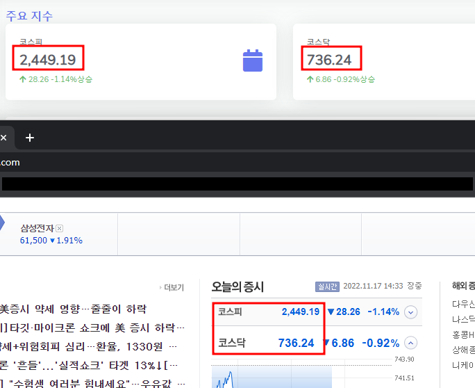 화면에 잘 출력됨!! 네이버에 올라온 실시간 지수와도 일치한다.
