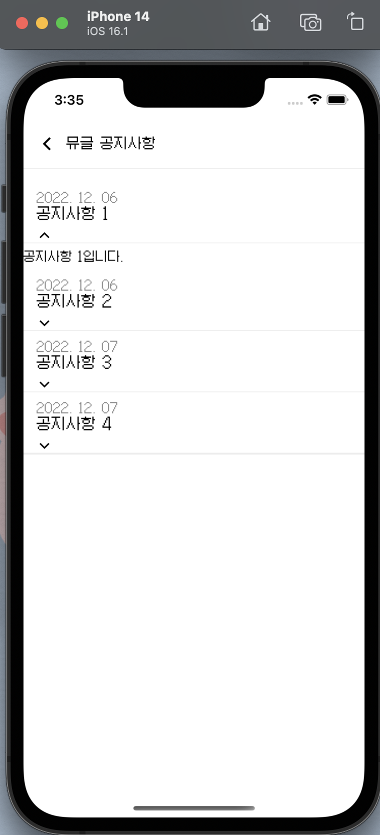 3. 공지사항, 굿즈 거래소 Screen 소스에서도 마찬가지로 json 파일 데이터를 불러와서 아래와 같이 코드를 작성했다.