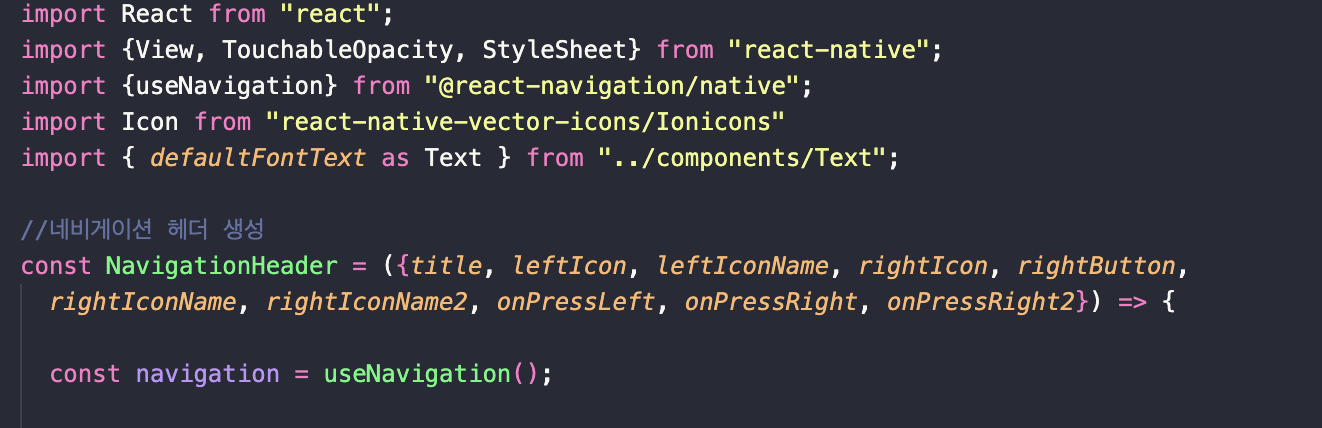 - 커스텀 공통 네비게이션헤더 컴포넌트를 생성하고 각 화면에서 타이틀, 아이콘이 다르게 렌더링되도록 하기