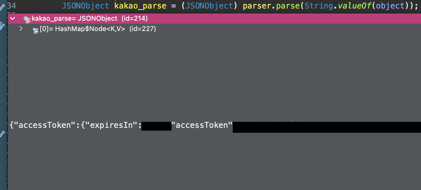 JSON으로 받아오기 때문에 JSONObject로 받아서 파싱하여 처리.