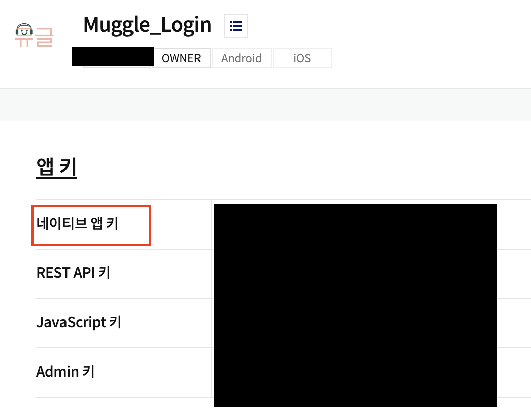 네이티브 앱키는 카카오 개발자 센터에서 발급받은 저 네이티브 앱 키를 적으면 된다!