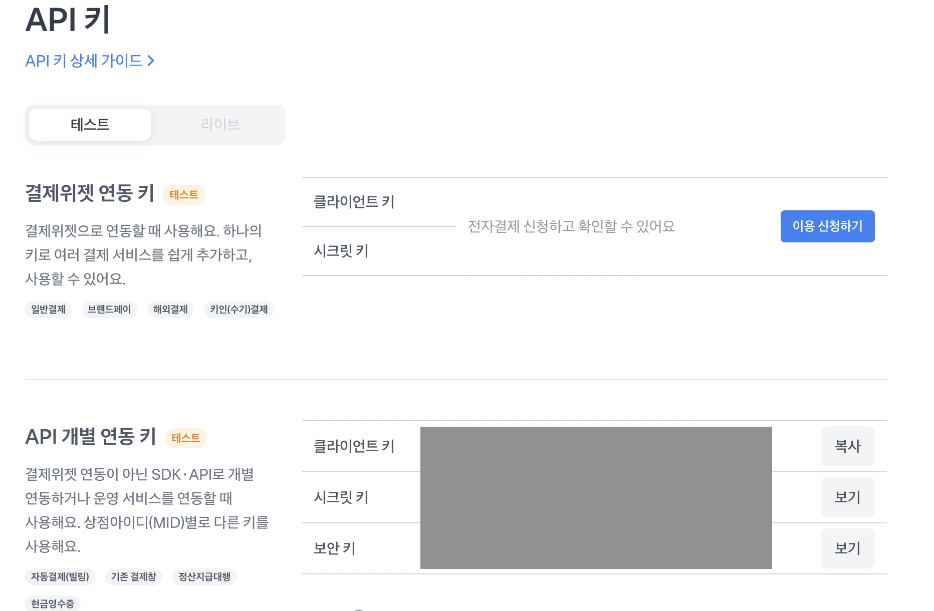 1. 토스 개발자센터에서 시크릿키 발급받기