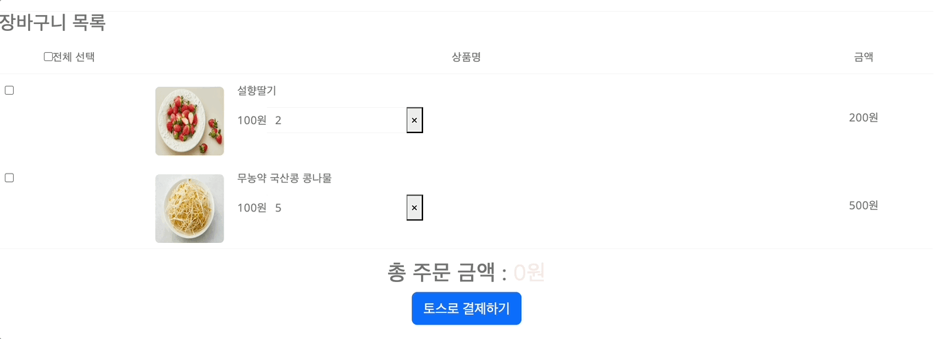 체크박스 클릭 시 주문 금액 바뀜