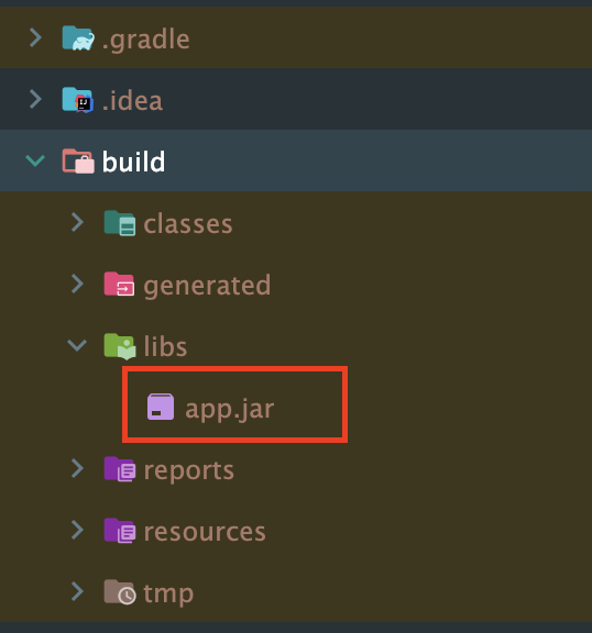 빌드 시 build/libs/app.jar 파일이 잘 생성됨.