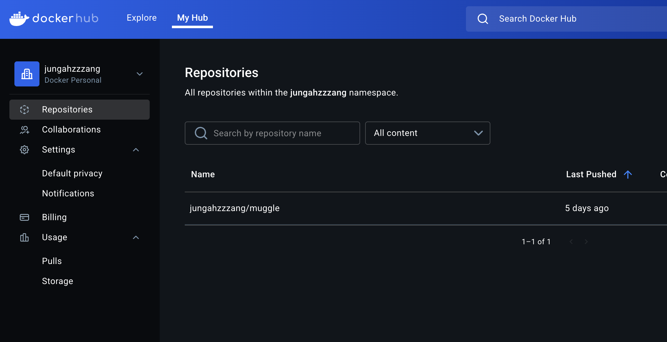 도커 허브(Docker Hub) 이미지 Repository 생성
