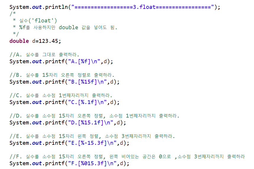 %d (정수), %f(실수) 등 다양한데 그중 가장 자주 쓰이는 것만 학원에서 배웠다.