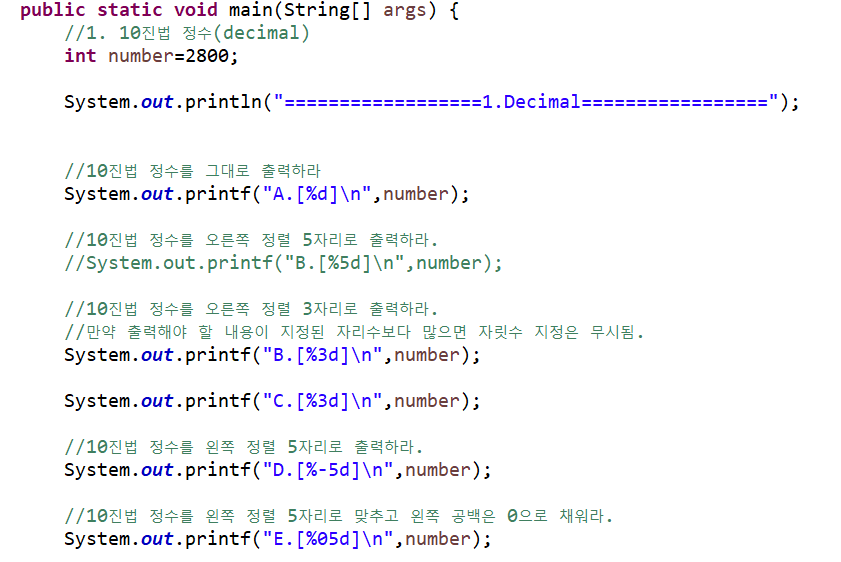 그중 특수 서식은 printf에서만 사용 가능하다. (+JDK 1.5 이상에서만 사용 가능)