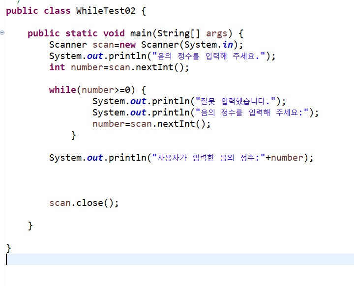음의 정수를 입력했을 때 종료하는 프로그램 구현
