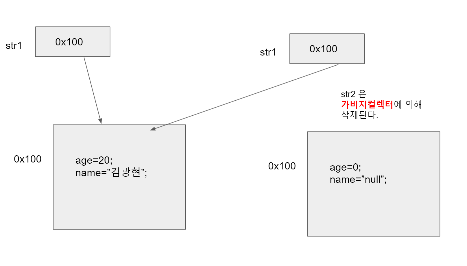 ->그림으로 쉽게 표현하면 이런 것!!! stu1, stu2 를 str1, str2로 잘못 썼는데...