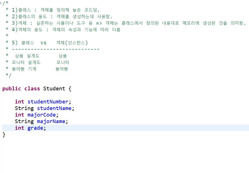 -객체의 속성은 멤버 변수(member Variable)로 선언함.