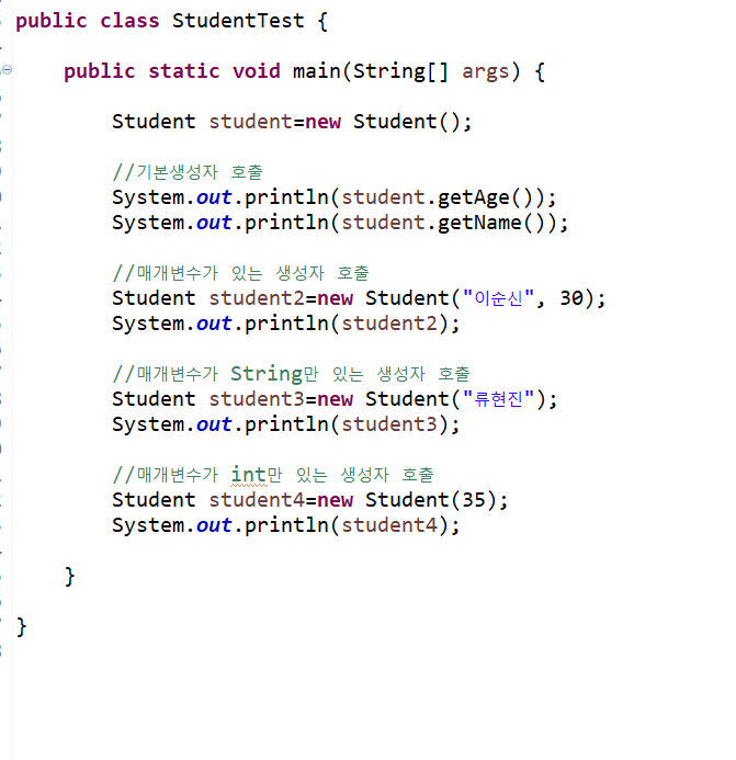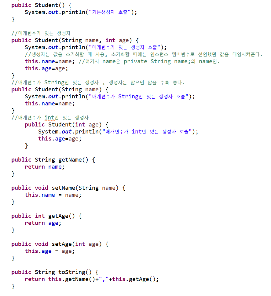 -생성자는 반환값이 없고 생성자 이름은 클래스 이름과 동일함.
