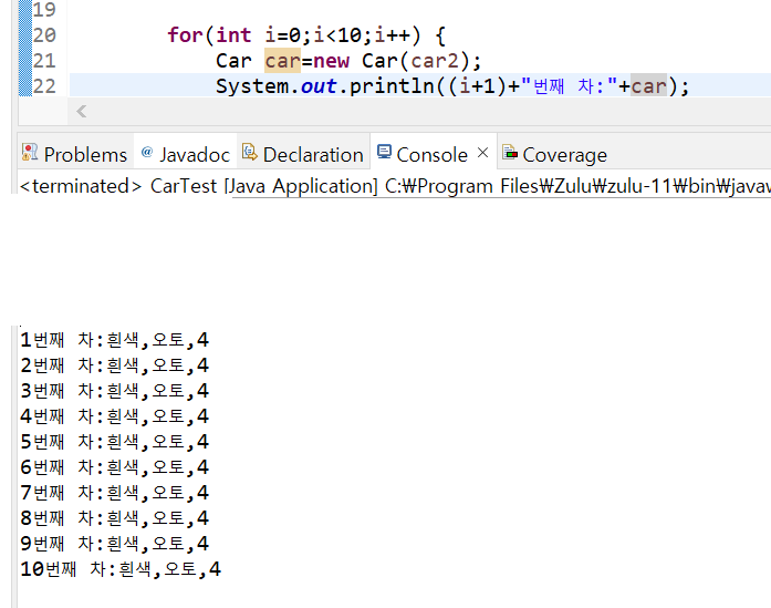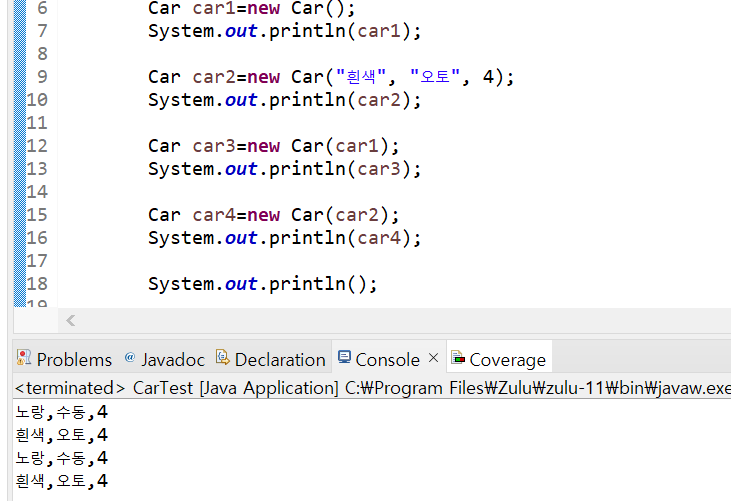 car3은 car1을 복사한 것이고 car4는 car2를 복사한 것인데