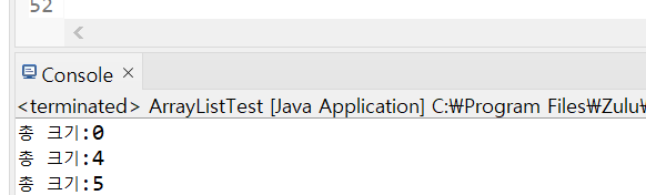 -int size() : 배열에 추가된 요소 전체 개수를 반환함.